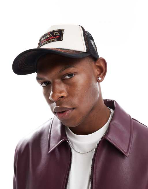ASOS DESIGN - Cappellino trucker nero ed écru con ricamo