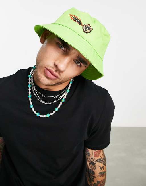 ASOS DESIGN - Cappello da pescatore verde lime con ricamo