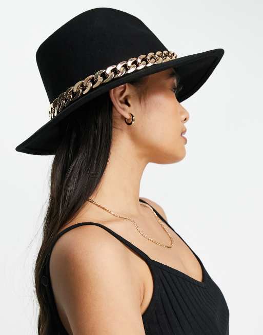 ASOS DESIGN - Cappello fedora nero in feltro con fascia a catenina e regolatore