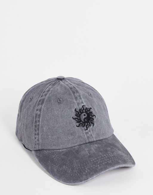ASOS DESIGN - Cappello morbido con visiera nero slavato con ricamo