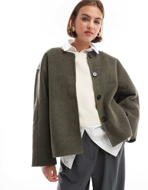 ASOS DESIGN - Cappotto elegante grigio antracite senza colletto
