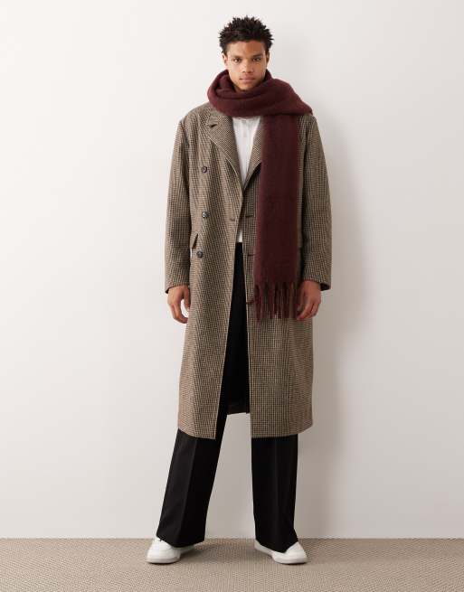 ASOS DESIGN - Cappotto oversize e lungo effetto lana marrone a quadri