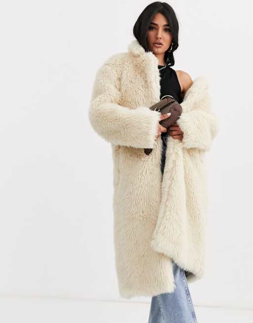 ASOS DESIGN - Cappotto teddy bear in ecopelliccia lungo crema