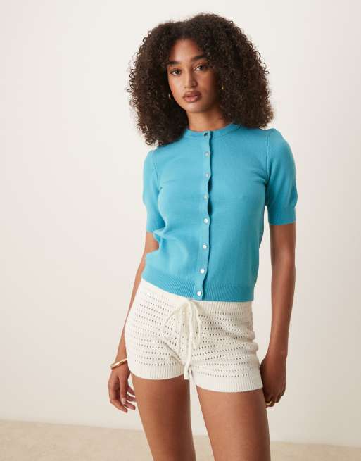 ASOS DESIGN - Cardigan a maniche corte blu strutturato con bottoni argentati