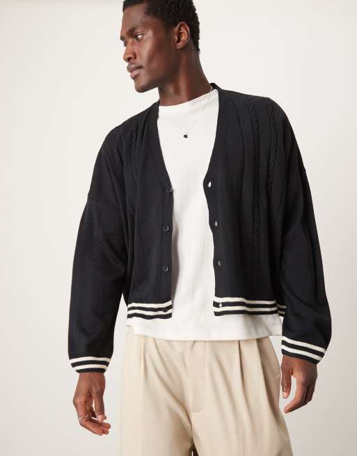 ASOS DESIGN - Cardigan blu navy a trecce super oversize con bordi a contrasto