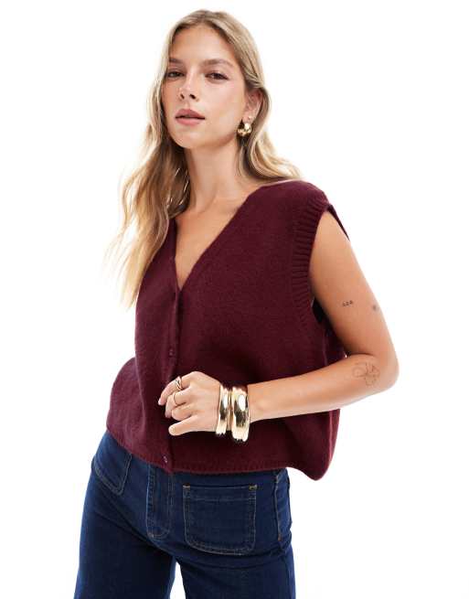 ASOS DESIGN - Cardigan bordeaux in maglia soffice