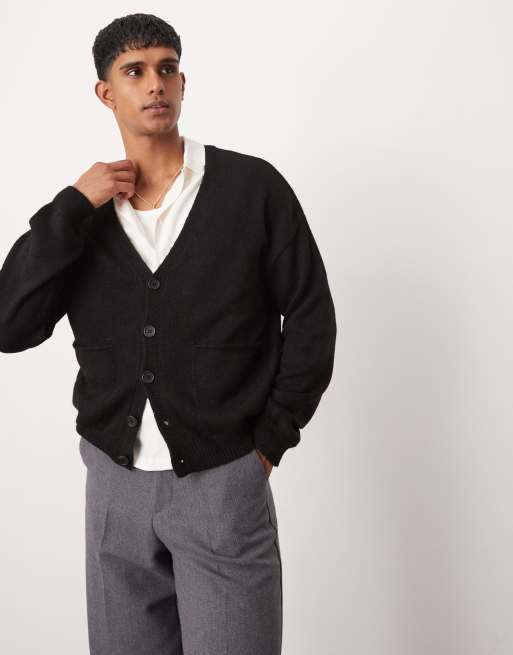 ASOS DESIGN - Cardigan comodo squadrato nero in maglia spazzolata