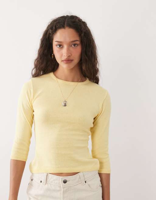 ASOS DESIGN - Cardigan con maniche tre quarti in maglia color latticello