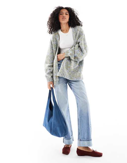 ASOS DESIGN - Cardigan fil-à-fil spesso oversize blu multiplo