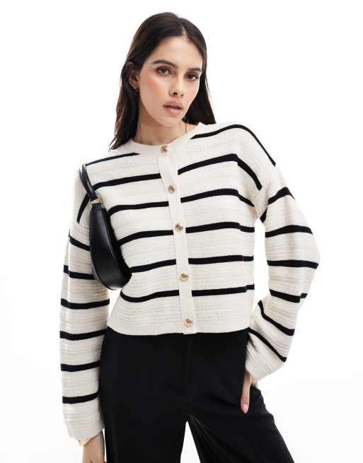 ASOS DESIGN - Cardigan girocollo in maglia a righe testurizzato con bottoni dorati