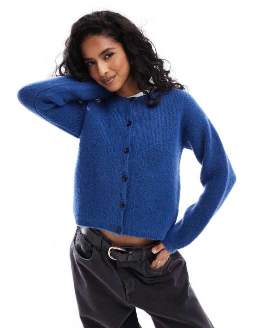 ASOS DESIGN - Cardigan girocollo in maglia soffice color blu cobalto