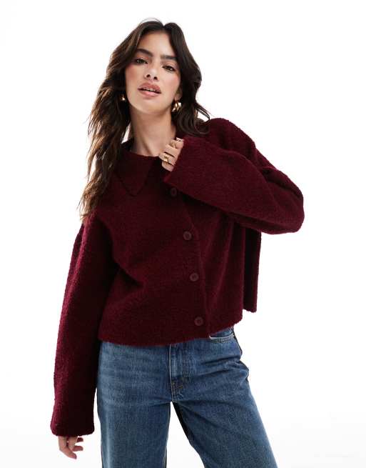 ASOS DESIGN - Cardigan in maglia bouclé bordeaux