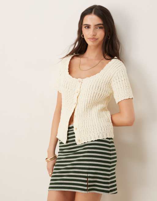 ASOS DESIGN - Cardigan in maglia color panna con filato testurizzato, scollo rotondo e bottoni