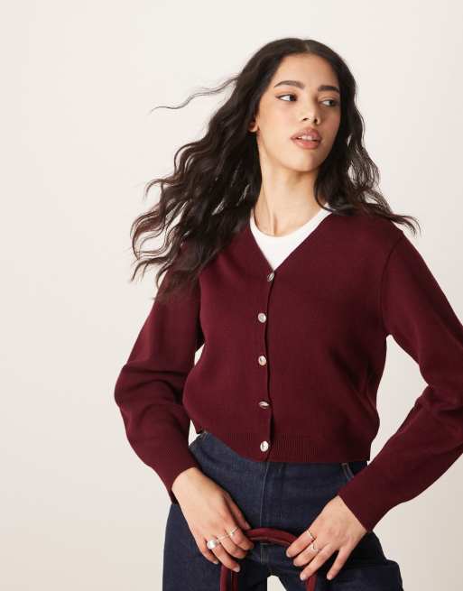 ASOS DESIGN - Cardigan in maglia compatta rosso ciliegia con maniche cocoon