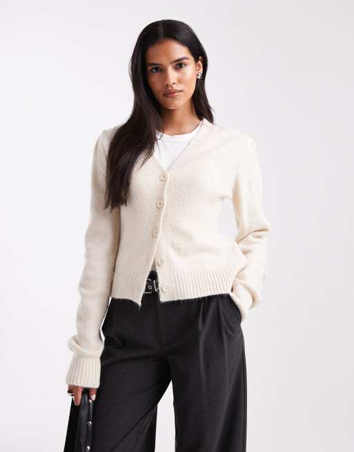 ASOS DESIGN - Cardigan in maglia écru con maniche strutturate