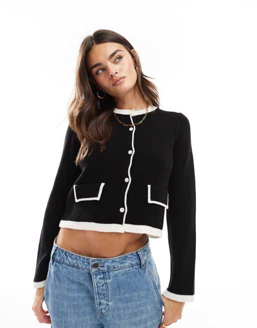 ASOS DESIGN - Cardigan in maglia nero con profili a contrasto