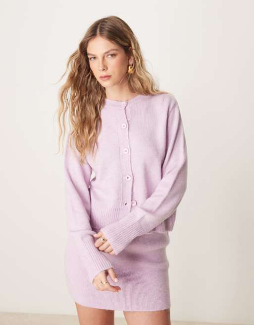 ASOS DESIGN - Cardigan in maglia rosa lilla in coordinato