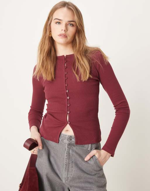 ASOS DESIGN - Cardigan mini a coste bordeaux