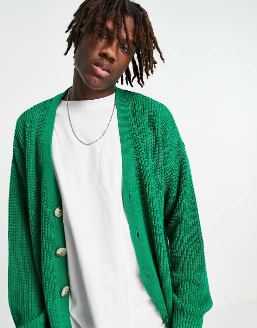 ASOS DESIGN - Cardigan oversize in maglia a coste inglesi verde