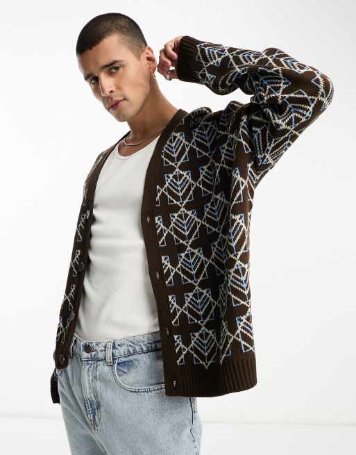 ASOS DESIGN - Cardigan oversize in maglia con motivo stile geometrico