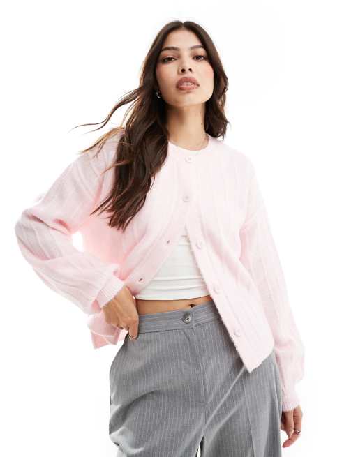 ASOS DESIGN - Cardigan oversize in maglia soffice rosa