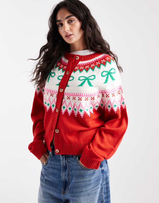 ASOS DESIGN - Cardigan rosso con carré e fiocchi