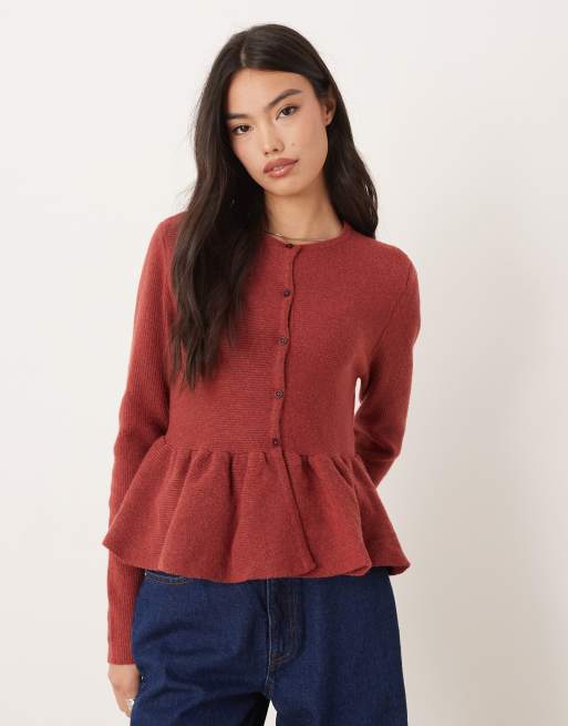 ASOS DESIGN - Cardigan rosso strutturato con fondo peplo