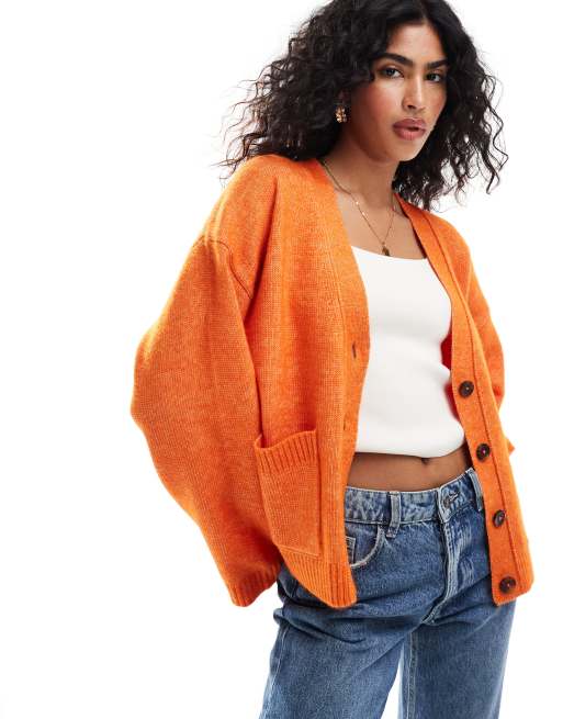 ASOS DESIGN - Cardigan squadrato arancione con scollo a V e tasche