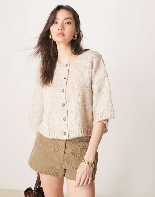 ASOS DESIGN - Cardigan squadrato avena a maniche corte
