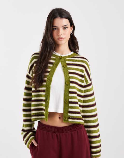 ASOS DESIGN - Cardigan squadrato in maglia soffice oliva a righe