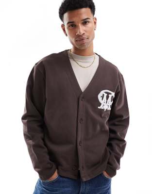 ASOS DESIGN - Cardigan squadrato marrone con stampa