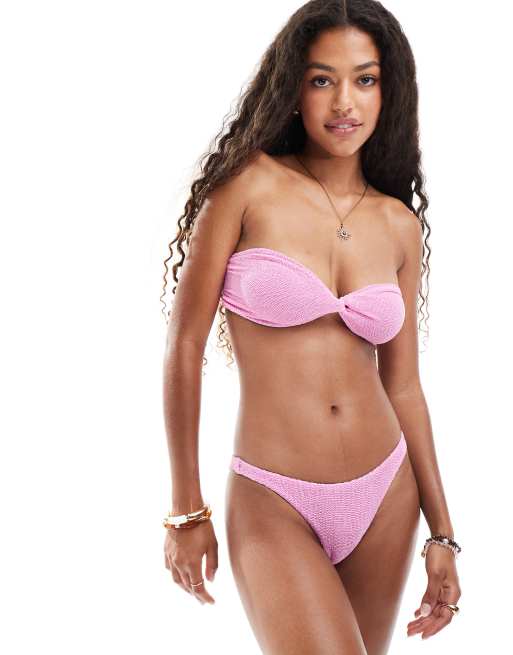 ASOS DESIGN - Charlene Florida - Slip bikini sgambati testurizzati rosa chiaro