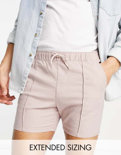 ASOS DESIGN - Chino corti skinny rosa con pinces e vita elasticizzata