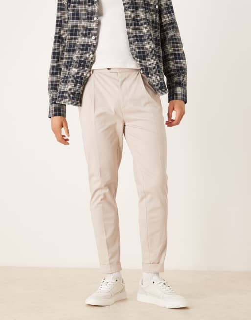 ASOS DESIGN - Chino eleganti affusolati in misto cotone color pietra con risvolto