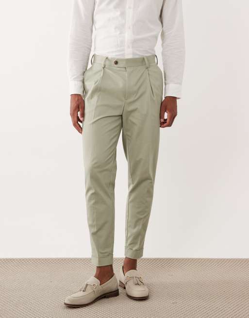 ASOS DESIGN - Chino eleganti affusolati in misto cotone verde salvia con risvolto