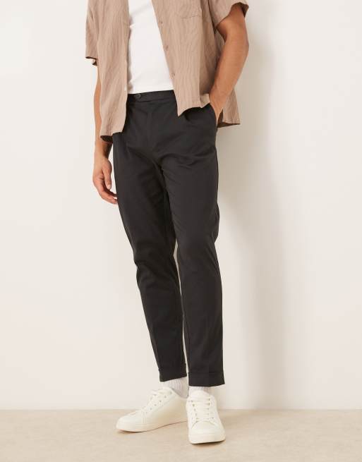 ASOS DESIGN - Chino eleganti affusolati neri in misto cotone con risvolto