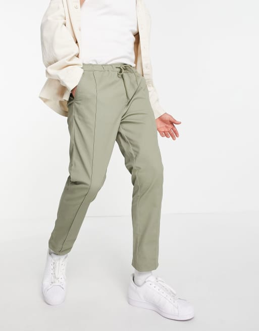 ASOS DESIGN - Chino skinny con vita elasticizzata e pinces kaki chiaro