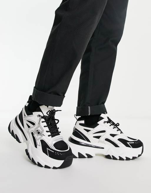 ASOS DESIGN - Chunky sneakers bianche e neri con pannelli metallizzati