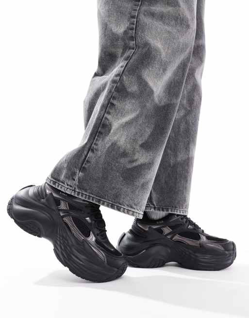 ASOS DESIGN - Chunky sneakers nere con pannelli metallizzati