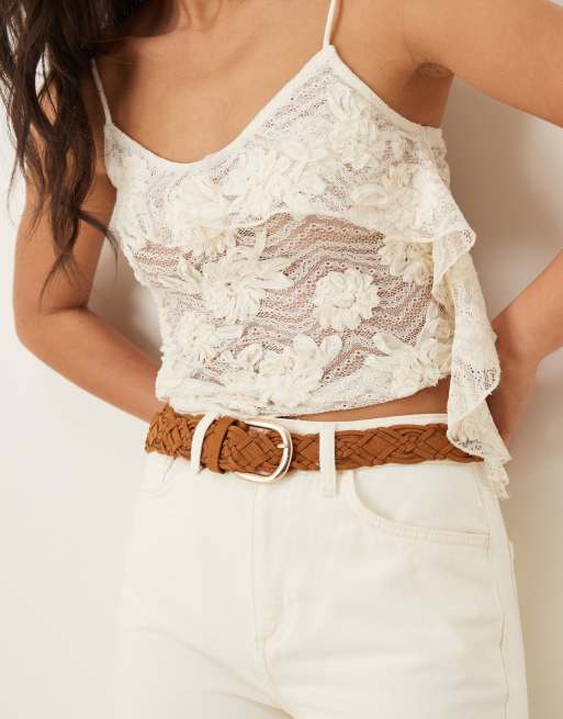 ASOS DESIGN - Cintura da jeans per vita e fianchi in camoscio sintetico color cuoio intrecciata
