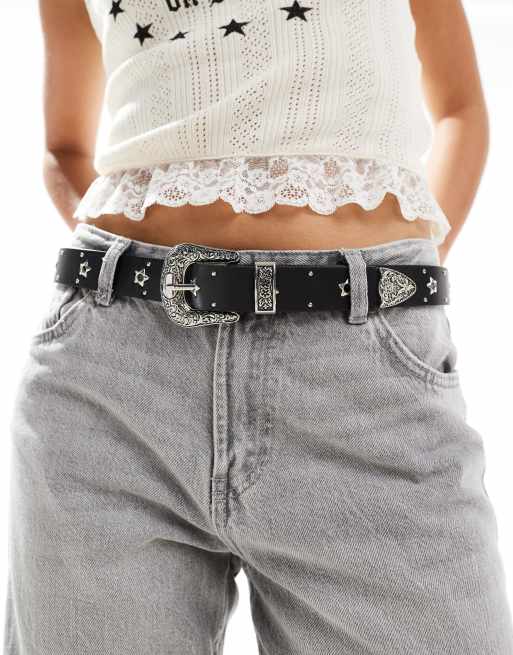 ASOS DESIGN - Cintura da jeans per vita e fianchi nera con occhielli a forma di stelle