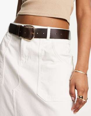 ASOS DESIGN - Cintura in pelle marrone per vita e fianchi con fibbia oro a mezzaluna