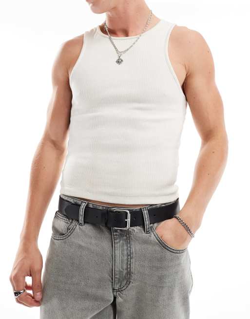 ASOS DESIGN - Cintura in pelle nera con fibbia argento brunito a scorrimento