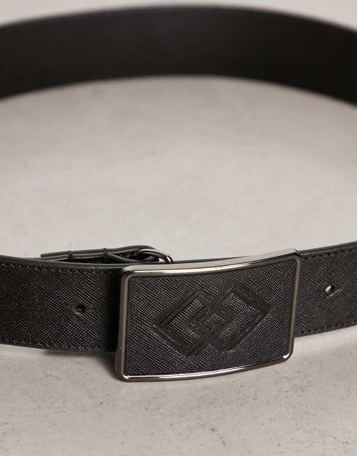 ASOS DESIGN - Cintura in pelle nera con fibbia con motivo in rilievo