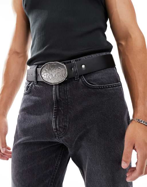 ASOS DESIGN - Cintura in pelle sintetica nera con fibbia appariscente stile western
