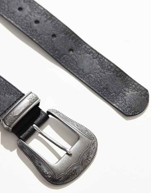 ASOS DESIGN - Cintura in pelle sintetica stile western nera con motivo in rilievo