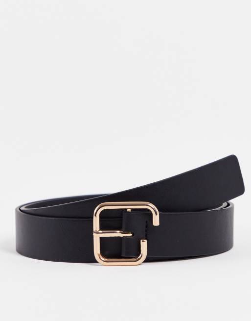 ASOS DESIGN - Cintura slim in pelle sintetica nera con fibbia asimmetrica