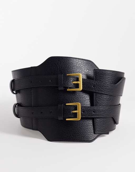 ASOS DESIGN - Cinturone a vita alta nero con doppia fibbia