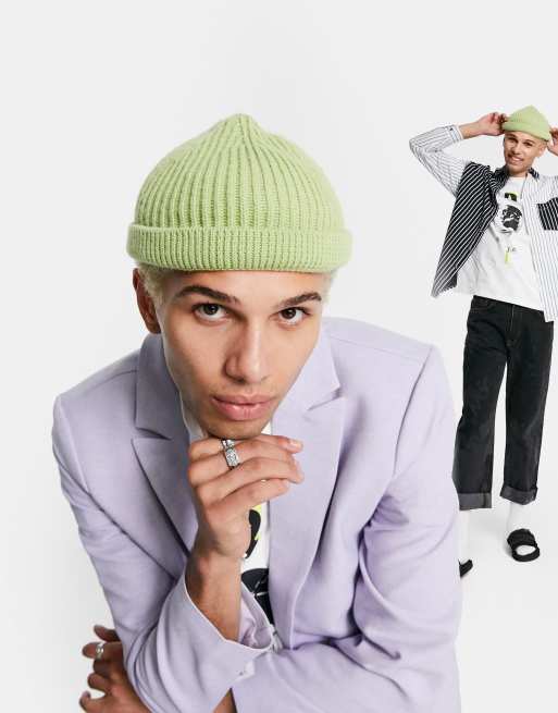 ASOS DESIGN CIRCULAR - Berretto da pescatore unisex verde a coste con piccolo risvolto in poliestere - MGREEN