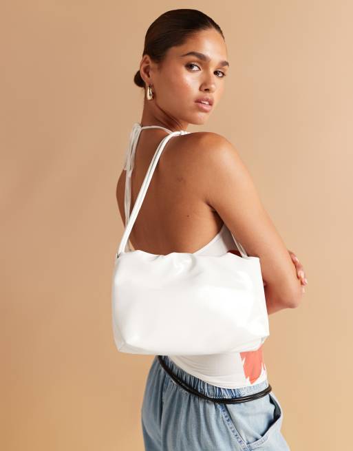 ASOS DESIGN - Cloud - Borsa da spalla bianca verniciata testurizzata con manico annodato